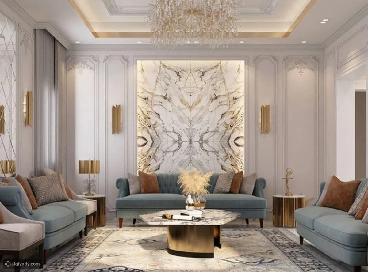 • دمج خامات مختلفة مثل الزجاج، المعدن، الخشب، الرخام.